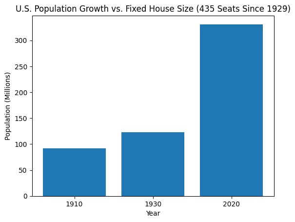The House size was capped at 435 by the Permanent Apportionment Act of 1929, following disputes over urban vs. rural representation after the 1920 census. Before that, Congress had gradually expanded seats with population growth, but gridlock led to the permanent freeze.